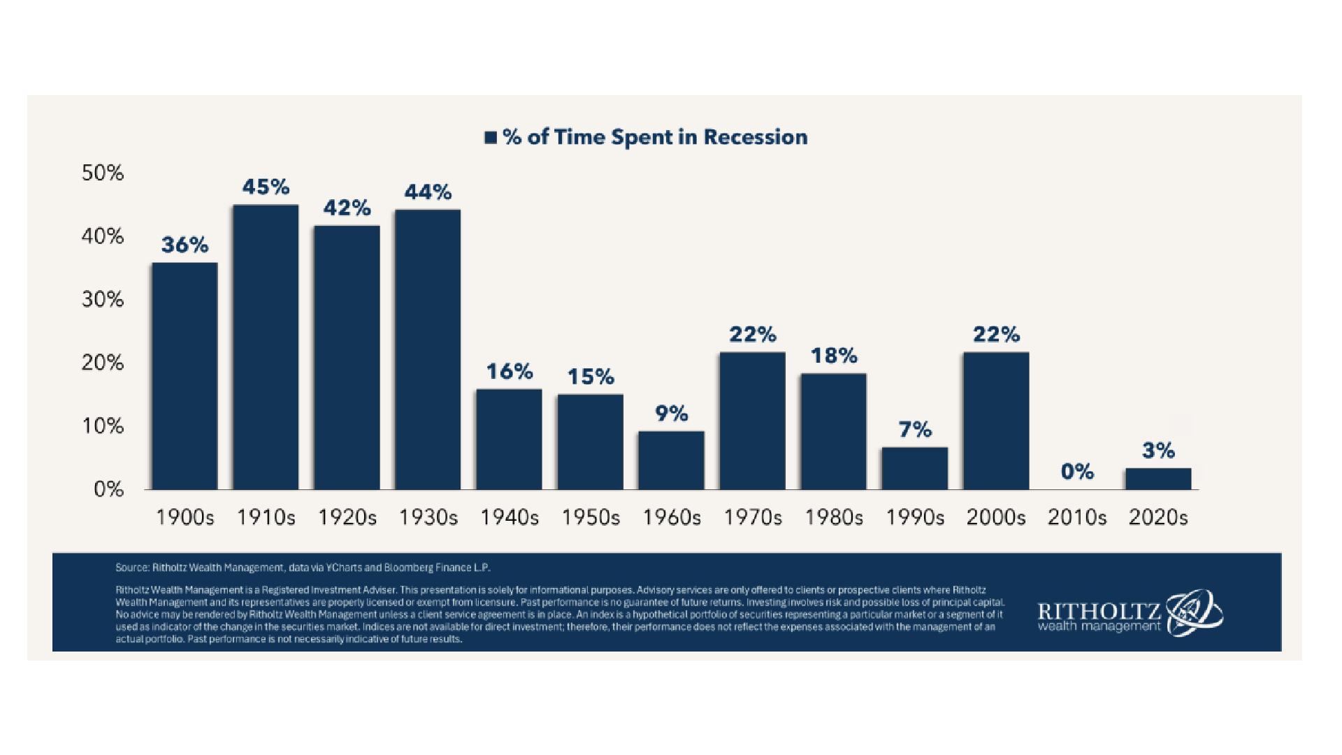 % of Time Spent in Recession by Decade. Since 1900s