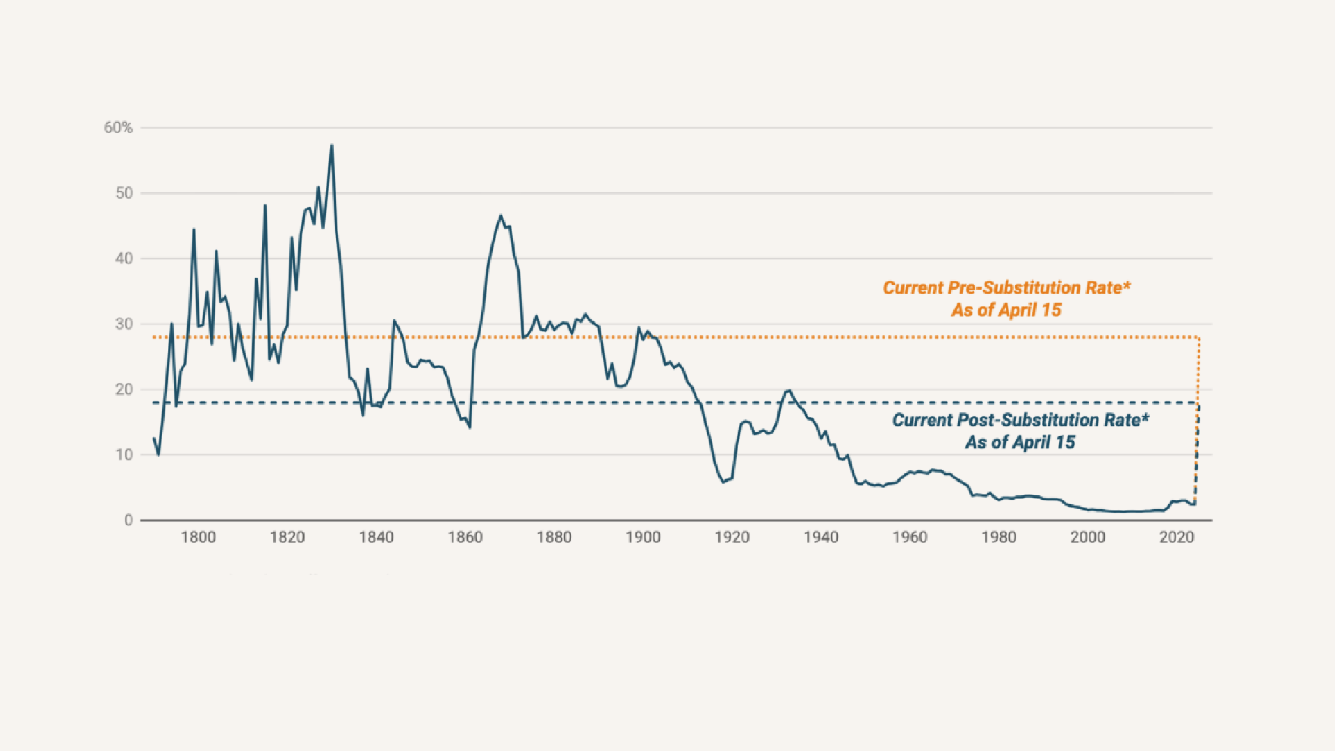 FIFURE 2. U.S. AVERAGE EFFECTIVE TARIFF RATE SINCE 1790