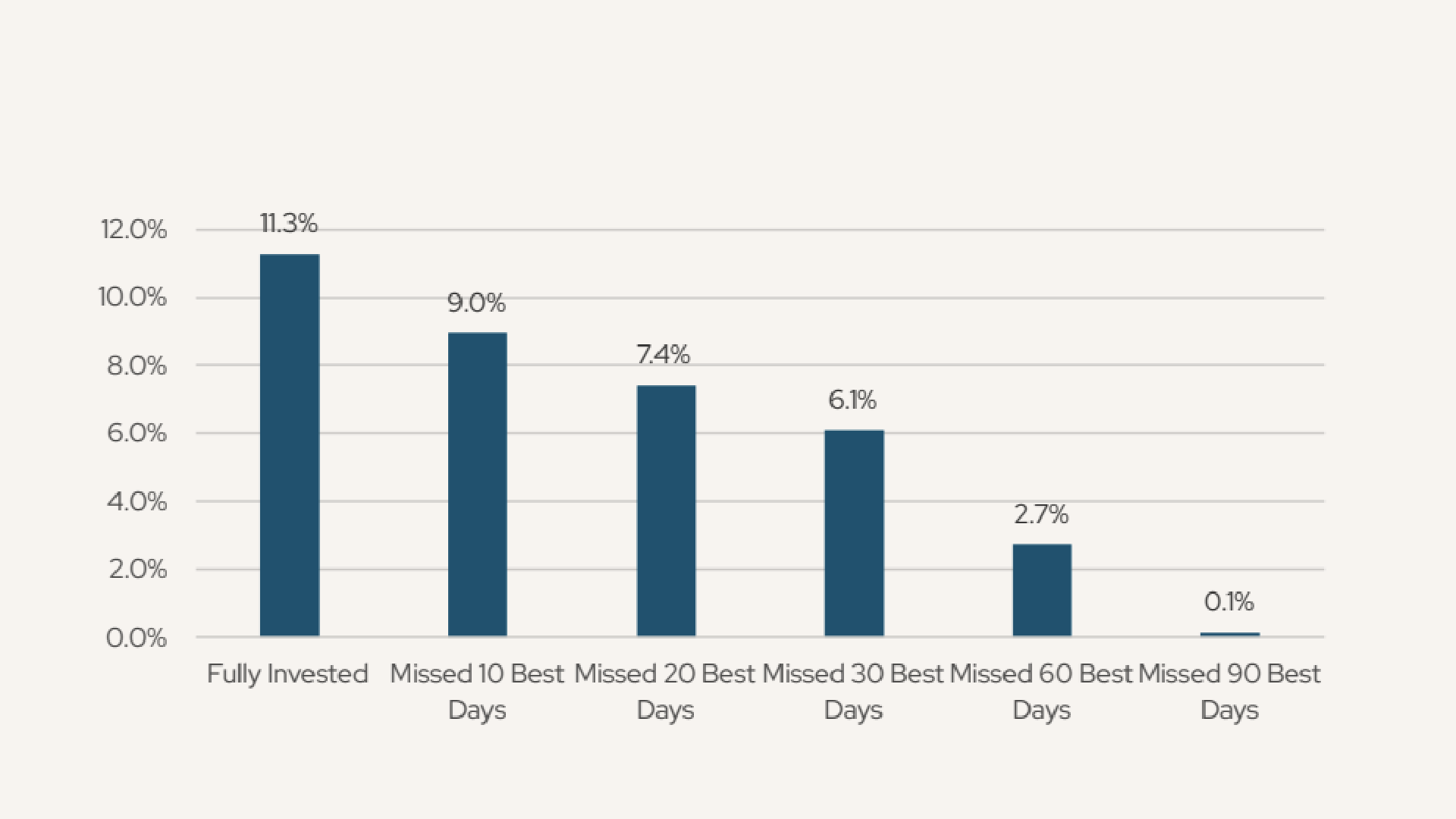 Here at AlphaCore, your advisors are constantly scouring the latest data to keep you abreast of all of the rapidly changing developments, sifting through the noise as we try to find actionable signals. We showed the chart below in our last letter a few weeks back, and we’ll show it again because it’s an important one. This chart demonstrates the importance of abiding by a simple principle: time in the market is much, much more important than timing the market.