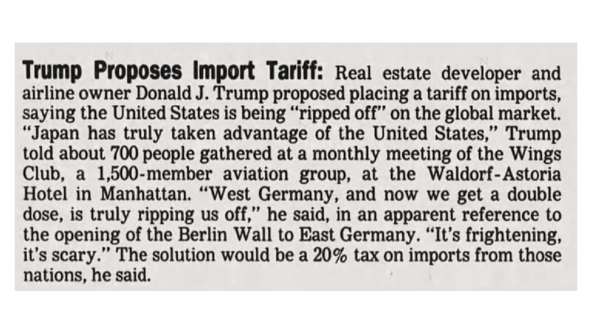 Source: “Trump Proposes Import Tariff.” Los Angeles Times, November 14, 1989. Story accessed on April 21, 2025.