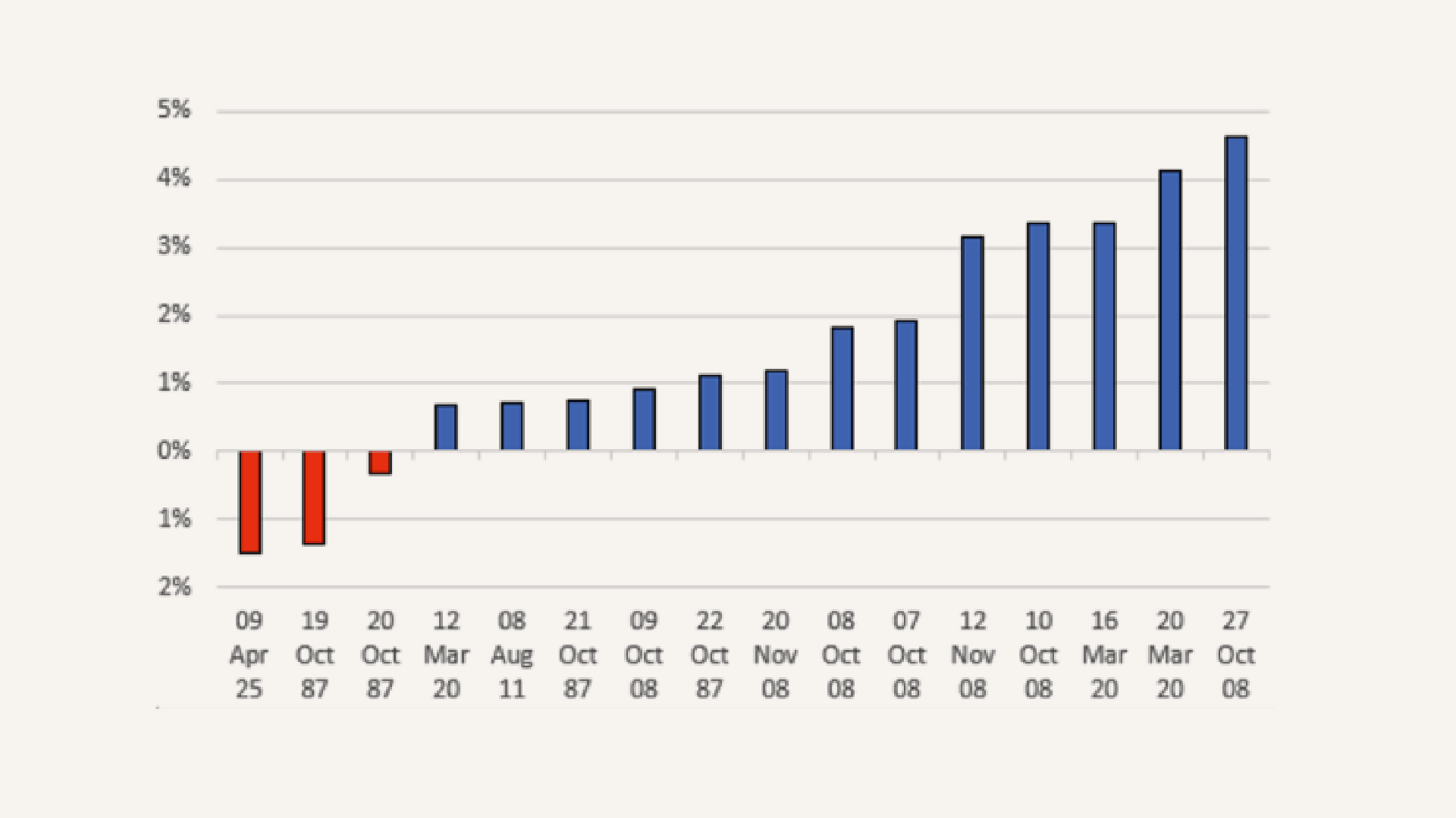 DX Y PERCENTAGE CHANGE DURING 5-DAY S&P 500 SELLOFFS OF 13% OF MORE