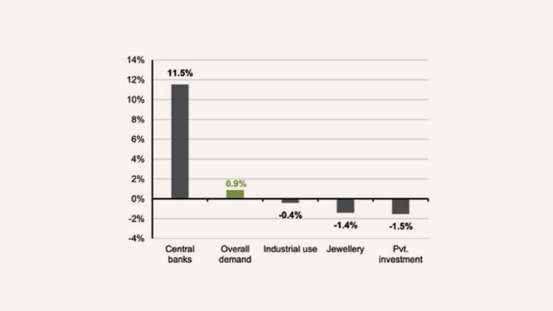 Annual change in gold demand, 2019-2024